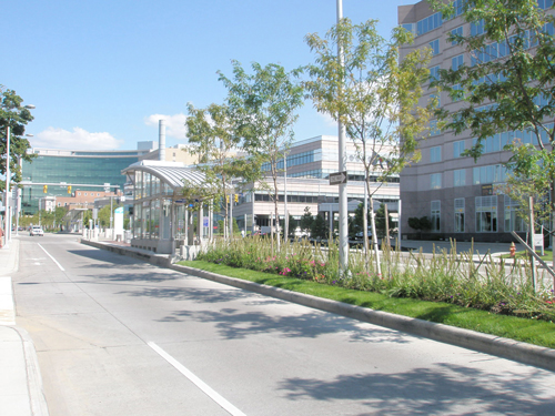 Cawrse and Associates, Chagrin Falls, Ohio Cawrse and Associates Inc. provide site planning, graphic design and administrative services. It has been practicing sustainable design since 1981. Cawrse has extensive experience with city planning commissions, state and local transportation departments and other public agencies. The firm has designed mixed-use, commercial and industrial developments, single and multifamily housing projects, and conservation sites and parks. Those ranged from a few acres in size to a 5,000-acre residential spread. Cawrse also specializes in health care facilities and hospital campuses. Cawrse has one principal and two partners, all registered landscape architects, along with a landscape planner and support staff. B'nai Jeshurun Synagogue Linden Ceremonial Courtyard Renovation, Pepper Pike, Ohio The Linden Ceremonial Courtyard renovation for the B'nai Jeshurun Synagogue includes a 16,100 square foot plaza and a bima, or outdoor space for religious services, special events, concerts and other gatherings. The bima features a movable ark, pulpit and Torah reading table. Cawrse designed the courtyard plaza and bima, as well as a 5,400 square foot garden and a "River Jordan" water feature. The garden is a place for spiritual contemplation, and the "River Jordan" is a sculptured fountain stationed at the entrance to the synagogue. Cawrse and Associates Office, Chagrin Falls, Ohio In 2007, Cawrse designed a new office building that incorporated environment-friendly features. Sensitivity to the existing natural features of the site was important. Because of the attention Cawrse paid to the environment, Chagrin River Watershed Partners awarded a grant to the project. The grant designates the project as an Innovative Stormwater Management System. Cawrse designed the new office so it includes a permeable paver parking lot, rain garden, bio-swale, and bio-retention basin. These all work together to capture and filter storm water runoff from the building's roof and parking lot. Many students, environmental professionals and municipal officials who are interested in learning about the system and implementing the same design features have visited the site. The complex has been documented by the USGS as a case study for permeable paver systems. Euclid Corridor Streetscape, Cleveland, Ohio The Euclid Corridor Streetscape Revitalization is a $200 million project headed by the Greater Cleveland Regional Transit Authority (RTA). It was designed to revitalize Euclid Avenue and provide a more efficient multi-mode route to access health care and cultural institutions on the east side of the city. Work was done to a section of the Euclid Corridor that passes through the Cleveland Clinic Foundation campus. The corridor includes stainless steel light poles and bollards, increased landscape features, tree planting trenches and bicycle lanes. Cleveland Clinic OCPM Parking Lot, Cleveland, Ohio The scope of this project was to transform an existing building site into a new parking lot. It corporates bio-swales between the parking bays for storm water retention. The bio-swales were planted with a mix of low growing sedges to provide a uniform look, and to filter a majority of the parking lot's storm water runoff. TriPoint Medical Center Wellness Walk, Concord Township, Ohio This scenic trail meanders through a wooded valley that surrounds the TriPoint Medical Center. The pathway is designed to improve health and wellness for patients, staff and the public. The trail has fitness equipment that anyone can use for rehabilitation, exercise and play. There are also seating areas for people who like meditation and relaxation. The trail was designed with low-impact design principles. The existing topography was followed to minimize site impacts. Other features include two boardwalks that traverse a natural stream, and a musical play area and trailhead dedicated to donors. Mary and Al Schneider Healing Garden, University Hospital's Seidman Cancer Center, Cleveland, Ohio The Mary and Al Schneider Healing Garden engages a person's mind, body and spirit, which accelerates a patient's healing process. A large labyrinth made of different colored pavement is central to the garden's overall theme. It is surrounded by a walkway containing interpretative sculptures, paintings and water features. The walkway also has seating areas, more sculptures and planting beds. The water feature is a low pool with small fountain jets backed by bright orange sculptured wall panels. The water feature is flush with the pavement so wheelchair users can stop right next to the water and enjoy the sights and sounds. Colorful lighting throughout the garden creates a brilliant display at night. Rolling Meadows Subdivision, Hiram, Ohio Rolling Meadows is an open space conservation project situated on 75 acres of rolling hills in rural Hiram Township. The land planning objectives included incorporating existing farmland, protecting steep slopes, streams and wetlands, and saving as much of the woodlands as possible by clustering the lots to create larger tracts of open space. This project won a Smart Growth Community Excellence Award in 2002.