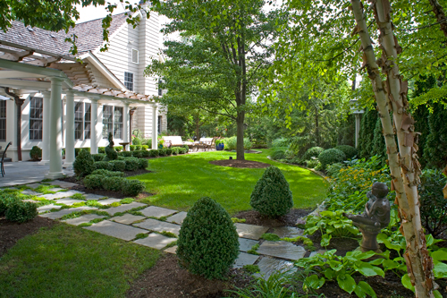 Oakland Design Associates is the landscape architecture and design/build division of Oakland Nurseries, founded in Columbus, Ohio in 1940. The design department was founded in 1974 by John Reiner, RLA, son of nursery founder Gustav Reiner. There are currently ten landscape architects and designers on staff who address a wide variety of landscape design needs in the greater Columbus area, from commercial to residential, public to private. The large majority of work includes middle-to-high end residential design, with specialty areas in irrigation system design/build, pond and water feature design and installation, and seasonal container and annual rotations. Oakland Design Associates has been the recipient of hundreds of design awards throughout its history, and continues to be ranked among the best and most-respected landscape design/build firms in the region. Grimes-Flood Residence, Bexley, Ohio This home, reminiscent of a 16th – 17th French chateau and property, contains many interesting features. The homeowner wished to combine a meditative walk in the garden with this historical home. In the rear there is a formal design separated by two large Japanese maples, which lead into another area. The garden is alive with bountiful plantings of specimen roses, boxwood, hydrangeas, hostas, catmints and an assortment of perennials. A wooden trellis separates the rest of the garden and shed area from the auto court. Miely Residence, Columbus, Ohio With its graceful lines and mix of softly textured plantings, this property exudes elegance and tranquility. The walls of greenery and airy canopy provided by the sprinkling of trees gives the gazebo area a feeling of being secluded within a sanctuary. The plantings are a flowing mix of rhododendrons, hydrangeas, day lilies, hostas and roses. Deree, Dublin, Ohio The front plantings were designed to lead the visitor through the narrow corridor to the entry door. Beyond the front entry is a Japanese inspired garden using an ancient Japanese principle of capturing the distant view, which in this case is a championship golf course. The minimalist garden design offers gravel walkways, hardscapes, a Japanese raked garden and a dry riverbed "stream." Bluestone and limestone slabs form access paths to all parts of the landscape. Local stone was used to construct much of the hardscape, including the elements of the dry garden. Riat Residence, Bexley, Ohio This front yard is a classic formal garden in the best of European traditions. Boxwood encapsulates the 4 quadrants with flowering crabapples as the center focus of the space. Liriope escorts the visitor to the back gate entry. A heavy gate leads into the backyard through a narrow passage onto an open space of patio, lawn and screening backdrop. Havens Garden, Delaware, Ohio This extraordinary large garden is as one would see at a European estate. Multiple gardens have fantastic viewing corridors and focal points. This is one of the great gardens in Middle America not open to the public. The garden contains multiple water features and defined spaces, with a fantastic array of plants.