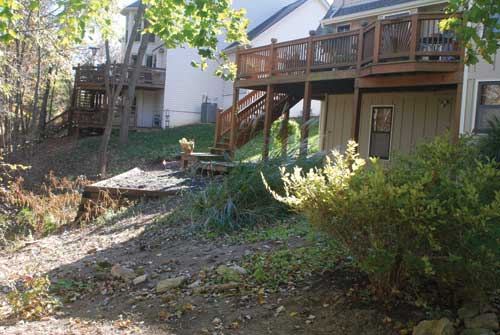 JoAnn and her husband were so dedicated to the completion of the project, in fact, that JoAnn found herself suffering an injury in the midst of the installation. Stone Solutions wanted to document the whole project from beginning to end to provide local contractors with visuals of how to create new outdoor spaces. Walking down the hill towards the woods one afternoon to photograph the progress, JoAnn slipped and fell, breaking her left ankle and fracturing her right. Not to be deterred, JoAnn explained that she still snapped a few photos (the light was just perfect, she insisted), and then crawled up the hill for help. JoAnn cheered on her contractors from the seat of a wheelchair for the weeks that followed, positive as could be and anticipating the finished product.