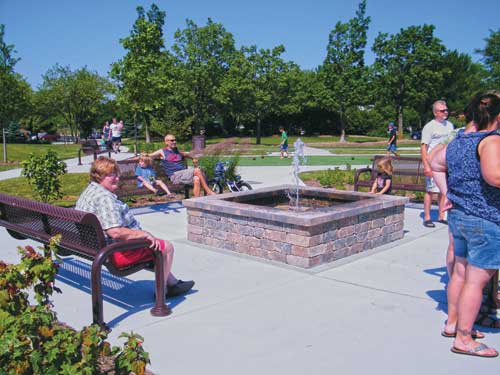 Neighbors provided valuable insights as to how to upgrade Fountain Square, and the Elk Grove Parks District staff incorporated energy savings strategies into its design. An Open Space Land Acquisition and Development grant from the Illinois Department of Natural Resources helped fund the park renovation. Lemme was the project manager and construction supervisor for the renovation. She was also part of the design team, as well as the grant administrator and contact person for the residents' committee. The parks district's construction crew, and the city of Elk Grove finance and horticulture teams contributed to the project. Lemme noted that it was a truly a team effort, and that the park district's board of commissioners fully supported it. Design Perspectives was the landscape architect for the park upgrade; one of its assigned priorities was to make sure the revamped park exceeded expectations for accessibility and provided recreation opportunities for all residents, Lemme said. Renovation of the Fountain Square began in 2007 and took a few years to complete. The water park was the first phase. When the rest of Fountain Square was finished, a second grand opening was held in 2012.