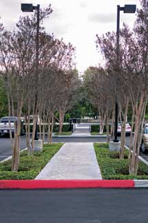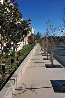 New urbanism shows promise for making urban developments green. The landscape planting aspects of new urbanism are critical factors of community design, but they need refinement. Landscape standards must be allowed to be more environmentally useful and must recognize plants as something beyond mere urban decoration. Specialty gardens and use of outside space for instance are not mentioned in the SmartCode. Noticeably missing from this code are site design standards for parking lots, site service areas, offsite screening and the civic spaces noted in Table 13. More attention must be given in the SmartCode to irrigation, stormwater management and the detailing of streetscape amenities. With time and attention to detail, the landscape standards of the SmartCode can be elevated to refined proscriptive and prescriptive standards set forth in traditional community landscape codes as found in communities such as Austin, Chapel Hill, Atlanta, Seattle and San Diego. What is excellent about the SmartCode is that landscaping is considered as an important element of new urbanism. Transect Zones The six transect zones (T zones) are central to new urbanism inspired design. As T zones become more urbanized, landscaping becomes more formal and planting spaces become smaller and more compact. The T zones elements are Land Uses, Buildings, Private Frontages, Public Frontages, Thoroughfares and Open Spaces. Here we list only Land Uses and Public Frontages criteria. Transect Zone I Land Uses: Natural preserve, recreation and camping. Public Frontages: Swales and naturalistic planting, bike trails. Transect Zone 2 Land Uses: Natural reserve, agriculture, recreation and camping. Public Frontages: Swales and naturalistic planting, bike trails. Transect Zone 3 Land Uses: Low-density residential and home occupations. Public Frontages: Open swales, some flat curbs, bike lanes and naturalistic tree planting. Transect Zone 4 Land Uses: Medium density residential and home occupations; limited commercial and lodging. Public Frontages: Raised curbs, narrow sidewalks, bike lanes, continuous planters, street trees in allee. Transect Zone 5 Land Uses: Medium intensity residential and commercial: retail, offices, lodging, civic buildings. Public Frontages: Raised curbs, wide sidewalks, bike routes, continuous or discontinuous planters, street trees in allee. Transect Zone 6 Land Uses: High-intensity residential and commercial: retail and offices, lodging, civic buildings. Public Frontages: Raised curbs, wide sidewalks, bike routes, discontinuous planters, street trees in allee.