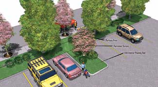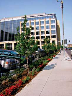 Other landscape standards exist for building perimeters and front entryway landscaping but strangely are not included in the design manual, nor are technical standards for the planting of ground covers, vines, turf grasses, hedges and native Iowa wildflowers. Irrigation and storm-water management are not part of these landscape standards, although reference is made to storm water as it pertains to site engineering review. Here, storm water is piped to storm sewers. Allowable runoff is equal to predevelopment conditions of the site during a five-year return frequency storm. On larger projects, some detention is required to ensure that the postdevelopment volume between a five-year storm and a 100-year storm is detained on site.