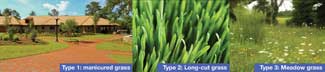 Type 1 grass is walkable, playable manicured turf grass used near buildings. Type 1 grass is maintained with trim mowers, irrigation, garden chemicals and is bordered by landscape beds. Type 1 may contain single trees as specimens or interior landscape beds or garden amenities, such as pools, fountains, pavilions, decks and the like.