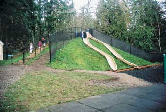 The answer lay in the design and development of the play area. As the dirt was excavated for the school building it was dumped several yards away to create a large ?EUR??,,????'??mountain?EUR??,,????'?? for a long embankment slide. The ?EUR??,,????'??mountain?EUR??,,????'?? was shaped as each load was dumped.