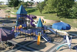 The surface of the playground includes the equipment use zone or that area that includes the immediate fall area, sometimes exit area and surrounding buffer area where traffic and circulation occurs. The surfacing guides the choice of playground equipment and layout. The technical data from each manufacturer must be consulted.