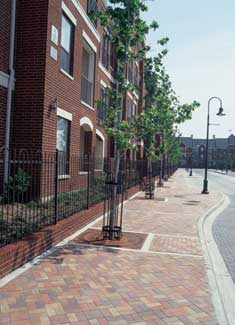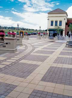 In these pedestrian settings and areas of municipalities, concrete pavers have several structural advantages over other upscale pavements. Pavers from all reputable manufacturers meet or exceed ASTM requirements that units be more than twice as dense as most poured-in-place concrete (8,000psi) and absorb only about a third as much water as does poured-in-place concrete (>5%). These are very strong, dense paving stones that are very difficult to break when installed properly. The low water absorption rate is a real advantage in heavy freeze-thaw climates. Water leaches down into concrete and freezes, causing cracking and chipping as time goes by. Concrete pavers absorb much less water and are much stronger than poured concrete and some other paving materials, resulting in a pavement that is fully functional for many more years. This density is also a real advantage when the pavement is inundated with deicers, as most heavily used sidewalks and plaza areas are in areas with harsh winters. The deicers do not penetrate the concrete pavers to any great degree and generally do not permanently discolor the pavement. Many upscale paving surfaces are indeed marred by deicers, with irreversible consequences.