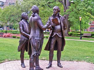 On the Morristown Green in New Jersey, George Washington stands in a 21st century park and does not appear to be out of place. The Morristown Green, listed on the National Register of Historic Places, is a 2.5-acre privately owned public park where a recent renovation revitalized the park for modern use, while making history tangible through a series of installations.