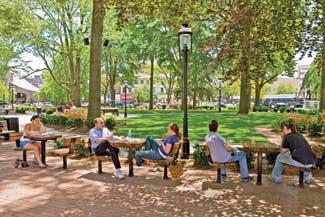 During his first encampment in Morristown in 1777, General George Washington headquartered at the Green in Arnold’s Tavern. Today, retail establishments, restaurants, places of worship, a theater and community facilities surround the Green. It is also the “backyard” for major redevelopment efforts underway in the Town of Morristown, New Jersey. When the trustees of the Morristown Green embarked on the revitalization project, they turned to the Green’s long-term consultant, Anna Cheng Young, RLA, LLA, to create a master plan and landscape design.