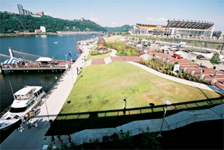 Landscape architecture company EDAW was hired to build the North Shore Riverfront Park as well as the ?EUR??,,????'??front porch?EUR??,,????'?? of the park, an esplanade about 2,000 feet long and 32-feet wide that will link the city?EUR??,,????'???s baseball stadium, PNC Park, and the city?EUR??,,????'???s new football stadium, Heinz Field. In addition to a half-mile stretch of the park, the esplanade was complete last summer.