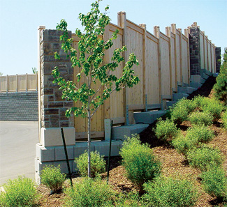 One structural advantage is the additional stability inherent with larger units. A greater mass will tend to better compensate for the potential variability of site conditions. Larger SRW systems will be less sensitive to overcompaction or the presence of heavy machinery behind the wall facing, or other minor contractor error. Larger retaining walls can also be helpful because they incorporate other structural items well. Poured-in-place crash barriers, flexible steel beam guardrails, and wood fences are all easy to combine with a machine-laid wall. These larger SRWs by sheer weight and size are more resistant to vandalism and damage, an unfortunate fact of life in public areas.