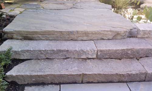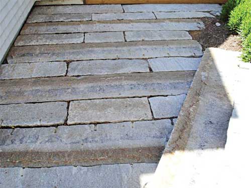 Granite building blocks have been reused in a variety of ways, including: as a retaining wall; steps and patio pavement; and as an irregular pavement. Many reused building blocks have their origins in projects such as building foundations, sills and walls of buildings.