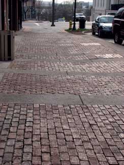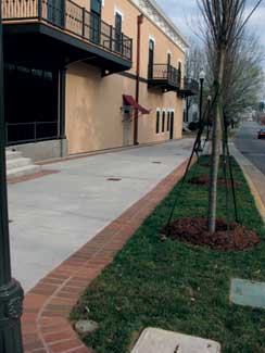 Everyone likes the look of the old brick sidewalks at the Madison County Courthouse in downtown Huntsville, Alabama, but some of the sidewalk has buckled from invasive tree roots and is now a walking hazard. Huntsville is undertaking a $1 million downtown restoration project. The first phase of renovations of the streetscape from Southside Square to Constitution Hall Park have just been completed, including removing all concrete and brick sidewalks and replacing it with concrete that has brick double-header edging; installing fescue sod and Zelkova trees (more root friendly); and installing irrigation, including bubblers to water tree roots underground.