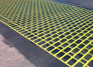 After the asphalt is heated a vibrator plate compactor is used to press the template down, said Stordy. The thermo plastic material is placed into the ground. The result is a decorative surface that is highly durable, fast to install and open to traffic, fully ADA compliant, snowplow friendly with no maintenance burden. ?EUR??,,????'??We?EUR??,,????'???ve developed over the years some nation-wide accredited applicators who are specially trained,?EUR??,,????'?? said Stordy. ?EUR??,,????'??In the last year and a half we?EUR??,,????'???ve installed more than 70,000 square feet in Los Angeles.?EUR??,,????'?? Other projects include the Canal Street reconstruction in Manhattan, N.Y., the airport in Frankfurt, Germany and numerous mall parking lots. At first 8-foot by 8-foot grids were installed. Now the company plans its first installation of a 12-foot by 12-foot grid in Salem, Ore.