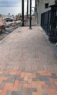 Hardscape democracy is alive in Phoenix, Ariz. Instead of selecting the brick pattern for new sidewalks, the city installed three herringbone patterns on a stretch of sidewalk to let the merchants and transportation officials take a look and decide which look they prefer. The samples are ?EUR??,,????'??warmer?EUR??,,????'?? tones that the city?EUR??,,????'???s existing red brick. The three patterns for the 50-foot demonstration stretch are: 4-by-8-inch brick at a 90-degree angle to the curb 4-by-12-inch brick at a 90-degree angle 4-by-8-inch brick at a 45-degree angle. The new brick will adorn the sidewalks running under the Fourth Avenue underpass to Ninth Street and the stretch of Toole Avenue linking Congress and Broadway. Recycled glass concrete paver bricks will edge the new sidewalks. The chosen pattern may influence the look of new sidewalks throughout the downtown, although this sidewalk project is not directly related to the downtown streetscape project.