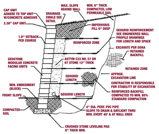 Additionally, technological advancements at the licensor and producer level have increased the popularity of segmental retaining walls significantly because of the flexibility of design, as well as aesthetic options such as shape, color and texture of the blocks. The use of segmental retaining wall units became prominent in the United States during the mid-1980s, where construction widely used modern geosynthetics. The design and product variability has certainly contributed to an estimated 10 to 20 percent product growth rate over the last several years. It is estimated that over 150 million square feet of segmental retaining walls are installed annually in the United States. The most significant product growth has been in the nation?EUR??,,????'???s largest metropolitan areas, where many of the premium sites have been developed. The industry boasts multiple walls in excess of 50 feet tall, including one structure used as a land bridge near Atlanta, Georgia which was over 62 feet tall. That structure is believed to be the tallest segmental retaining wall in the western hemisphere. Design Methodology for Erosion Control