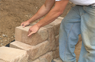 For the next lift, install the Anchor Highland Stone system in any combination of stones. Keep the wall bond by placing stones in a staggered relationship to the course below; this means that the stones should be placed in a way so that the joints on the row above do not line up with the joints below, creating a staggered effect.