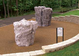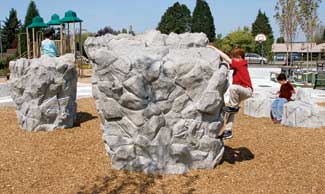 The second principle of good climbing boulder design is climbabilty. Each piece should be designed with a variety of hand and foot holds in an array of sizes so that there is something for everyone. Holds that are hidden, or can be used in a variety of ways, will give the users a sense of exploration similar to climbing on real rock. All climbing holds used outdoors should be self-draining, to avoid water pooling.