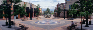 Ryan: Coolidge Park in Chattanooga, Tennessee. The use of pavers in vivid colors defines separate functional spaces with a consistent theme. Various combinations of shapes and patterns, custom colors create a series of overlapping circles of various sizes, playfully symbolizing hot air balloons. Intricate, inlaid multi-colored star shaped patterns add to the festive atmosphere. The pavers allowed the design to be realized and provide the owner with a product of long-term durability, low maintenance, andconstructed at a competitive cost.