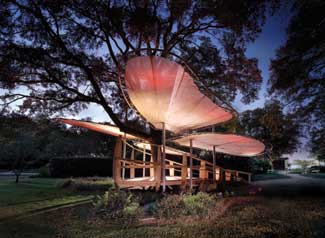 The firm HDR, Inc. is an employee-owned architectural, engineering and consulting firm with more than 150 offices worldwide. The company is ranked 19th among Engineering News-record?EUR??,,????'???s 2007 ?EUR??,,????'??Top 500 Design Firms,?EUR??,,????'?? and ranks as the No. 1 healthcare design firm by Modern Healthcare. When the opportunity arose for the firm to donate its services to a tree house design competition, principals in the company?EUR??,,????'???s Dallas office jumped at the challenge. ?EUR??,,????'??We saw this as an opportunity to share architectural experience with the Dallas area community,?EUR??,,????'?? said Randy Hagens, HDR structural team leader and a design team member. ?EUR??,,????'??Being ADA accessible, the design offers an opportunity for all to enter an elevated structure, bringing them closer to the canopy of the tree while looking down on the colorful plantings on the ground. All visitors experience the fantasy of the design by entering the cocoon and viewing the emerging wings above.?EUR??,,????'??