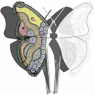 Hagens noted that the design entry was a two-dimensional presentation depicting a three-dimensional vision. To get there, a three-dimensional model was produced in Sketch-Up and rendered in Photoshop. The original butterfly wing concept is based on a JPEG image of an actual butterfly.