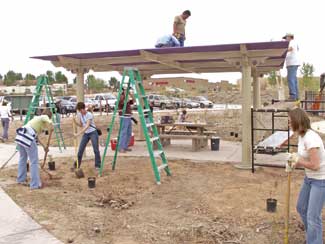 On April 14, volunteers from Sites Southwest and employees from Open Space assembled the structure and planted donated shrubs. Although Scott had designed the structure to capture the essence of the American West, as the structure went up, he was surprised at just how well it fit in with its surroundings.