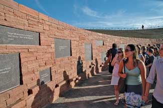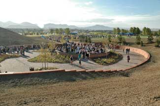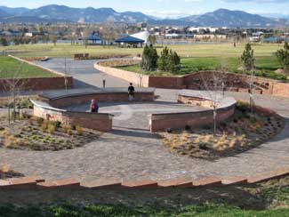 The site includes overlooks along and on top of Rebel Hill that provide panoramic views to the Rocky Mountains, the eastern plains and the Columbine community and landscaped terraces on the north hill that soften the hillside and allow for small gathering areas in which visitors might share their thoughts and experiences with each other.