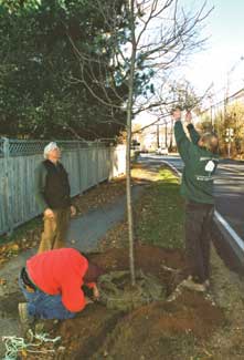 Landscape Architect Thomas E. Wirth, ASLA, took advantage of the date to help his community plant four skyline honeylocust trees along Main Street. Wirth said he will plant more on National Arbor Day this April. The town drew up new plans for Main Street in the late 1990s to improve traffic flow. Wirth, as a member of an ad-hoc committee, developed an alternative plan retaining the old road width, and replanting trees close to the road to maintain local scale and character and keep traffic flow at bay.
