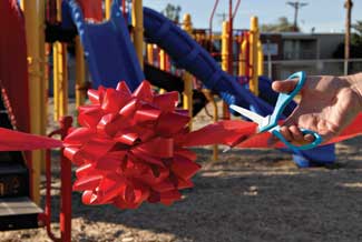 The Solano Elementary had recently received state and federal grant money to improve conditions, but rapidly escalating construction costs threatened planned upgrades to the playground. The school district asked the Real Gift Foundation (RGF) for help. According to Conde Rogers of the RGF, “We knew that without help from volunteers and outside donations, existing funding would not cover even half of the needed equipment.”
