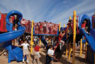 Working with the school district, the RGF encouraged the playground supplier (Dave Bang and Associates) to substantially discount the Playworld Systems equipment and donate their oversight during construction. Brown and Caldwell donated $30,000 to help make up a budget shortfall and recruited a talented group of contractors and members of the Arizona Rock Products Association to donate labor, equipment and materials to demolish and dispose the old equipment and pour an approximate 3,500 sq. ft. concrete sports court. “It made perfect sense to use our industry relationships and the proceeds from our charity golf tourney to build something special for these kids” said Eric Mears, vice president and co-chair of the Brown and Caldwell Invitational.