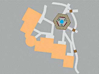After acquiring the 2D Site Plans (see Fig. 1) from the project general contractor the first phase 3D Plans for the Courtyard Garden were developed after a field visit for observation, measuring and taking digital photos of the many site perspectives. Figs. 2a, 2b, 2c show an AutoCAD 2006?EUR??,,????<??? 3D plan view, front view and N.E. isometric view using primarily the default settings for rendering in AutoCAD?EUR??,,????<???.
