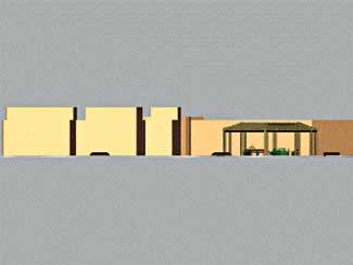This rendition was created to get a feeling for the space; the orbit tool in AutoCAD?EUR??,,????<??? was used to garner information from groundplane, frontal and aerial perspectives of the scene.