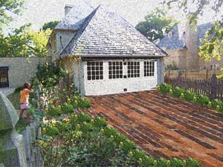 To illustrate this concept, a simple photomontage image has been created using Adobe Photoshop CS2. The client requested specifically a hand sketch drawing illustrating the restoration proposal of a French colonial home in Baltimore, Maryland. This ?EUR??,,??hand sketch?EUR??,,?? drawing was required by the historical preservation architectural committee for approval and consideration of the home owner?EUR??,,??s proposal to restore the converted 1950?EUR??,,??s garage-studio back into a garage. Figure 1 illustrates the before-existing converted garage-studio. The homeowners are proposing a new French colonial style garage door, changing the concrete driveway to brick, and traditional shrub edge along the perimeter of the driveway. Figures 2 and 3 illustrate the proposed French colonial garage door and bricks to be use in the photomontage.