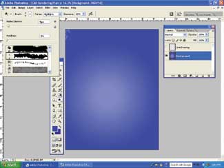 You might also want to consider and experiment with the Gradient tool. This tool will allow you to create a fade out feel on the background. Use the gradient editor and experiment with several color schemes combinations such as a dark and light tone of blue and the circular gradient. See Fig. 17.