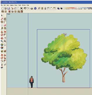 Open a new SketchUp document. The easiest way to place the tree vertically is to first go to Camera and select Parallel Projection, then select the front view from the views toolbar. Bryce, the default guy who shows up at the origin point should be standing on the ground or red axis and he is facing you.
