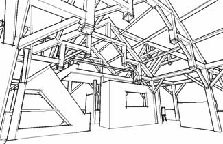 Several new rendering types developed for the latest release, allow models to take on a loose or sketchy appearance. Specifically, the Jitter and Extended Edges options create models that appear hand drawn and schematic in their presentation. Often this is helpful when trying to communicate conceptual ideas to clients or keep presentations informal. Similarly, Depth Cued Edges and Endpoints options make lines in the foreground darker and emphasize the endpoints of lines making them pop visually. The illustrations below show examples of these graphic features.