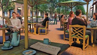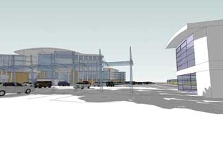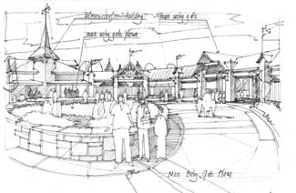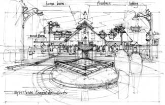 Ideally, that collaboration runs through the design work. At the beginning of a project our digital and hand-sketch designers get together to produce a set of storyboards based on sketched conceptual designs. Through that discussion, we hash out the design problem and produce a quick, low-detail, animated conceptual model. As we watch that animation, we think about the project?EUR??,,????'?????<???EUR?s ?EUR??,,????'?????<?story?EUR??,,????'?????<? and what else we need to do to tell it?EUR??,,????'?????<??oewhat we?EUR??,,????'?????<???EUR?re trying to accomplish, what elements need more explanation, etc. We then begin to think like directors, discussing when to pan to another view, what elements should be in the foreground, what is left in the background. Those ideas are worked into the sequencing of the digital model, which is further manipulated by adding that human touch of sketched people, trees and other details.