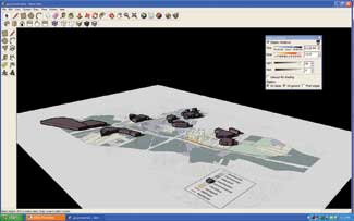 They chose to represent the inventory and analysis mapping through a combination of animations and stills created with Google SketchUp. SketchUp generated color-overlay maps consistent with traditional methods of site analysis. The three-dimensional animation capabilities provided an interface for seamlessly combining the analytical maps with video footage from the site.