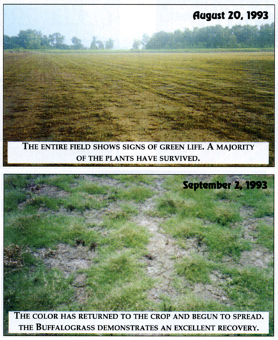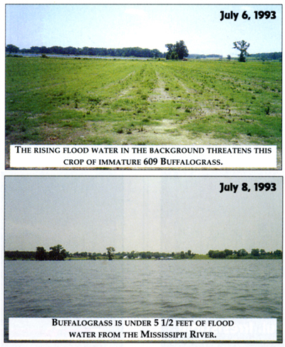During ?EUR??,,????'??The Great Flood of '93,?EUR??,,????'?? a crop of 609 Buffalograss located at the Emerald View Turf Farms in O?EUR??,,????'???Fallon, Missouri was submerged under water, along with millions of acres of property throughout the affected Midwestern states. The flood destroyed crops indiscriminately, but the 609 Buffalograss displayed a hardiness that no one realized it possessed. After 36 days of an underwater existence, the sod survived. The mechanism behind this plants survival skills is currently under study.