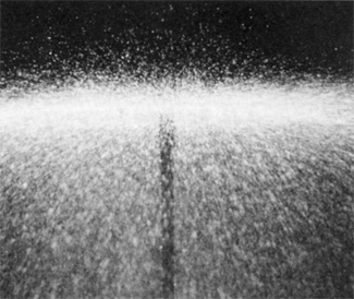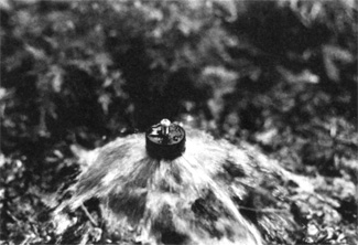 The goal is to use sprinklers that put out large drops of water close to the ground, and do it slowly. Large drops of water are not easily moved by wind, so water falls where it is needed. By sprinkling close to the ground, the amount of water lost to evaporation is reduced.