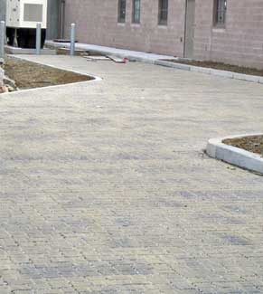 This Uniloc permeable paver was special ordered for this particular project because the L-shape and thickness of 8 cm can support heavy loads and last much longer than an asphalt installation.