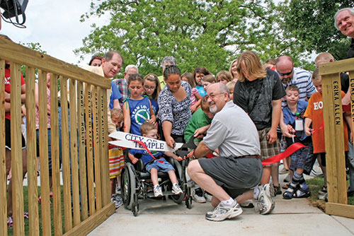 Disabled youths in Temple, Texas can now enjoy a playground designed specifically for their needs. Ben Pamplin, Leadership Temple graduate, VP and COO of Heart of Texas Landscape & Irrigation Co., Inc., in conjunction with 2008-2009 Leadership Temple graduates and Temple Parks Foundation raised more than $150,000 in order to provide an all-accessible playground.