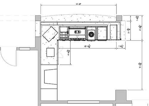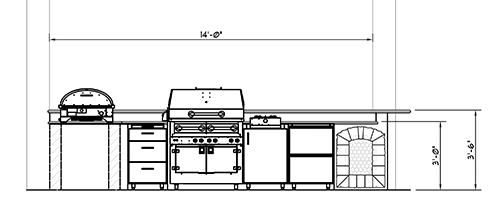 With a pergola already in place, Horgan's first step was to determine the location of the grill. After that, all of the other pieces would fall into place. Because the grill was so much more powerful than the one it was replacing, he had to bump out the cooking area approximately 18 inches beyond the overhead structure.