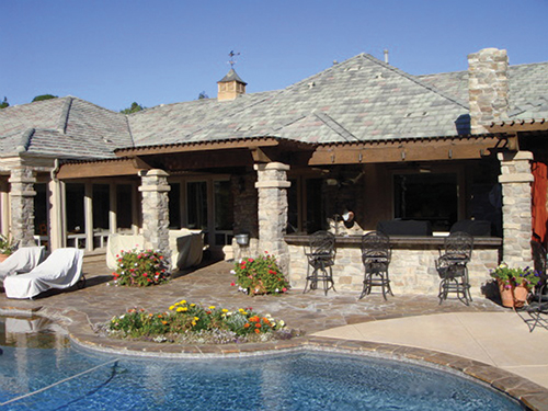 Horgan said the entire patio, from the house to the pool, is tough, hard Three Rivers Flagstone. Don Wilson of Wilson Masonry handled the project's stone work. After he and his team traced out the shape of a new kitchen island, they surgically saw cut the flagstone and the four-inch-thick concrete slab they rested on.