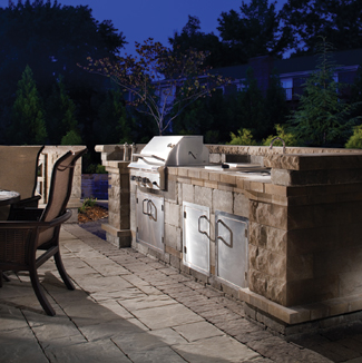 Belgard's latest venture has taken this concept one step further by partnering with Harmony Outdoor Living to create prefabricated modules for outdoor kitchens and living rooms. These modules, or kits, are pre-assembled, combining fireplaces, fire pits, and fire tables with Belgard pavers and wall products to make outdoor room construction a snap. Kitchen modules can even be ordered with grills, sinks, and stainless cabinetry included. These modules come shipped on a palette and are easily set in place with a Bobcat.