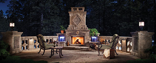 Foundation: Wherever a modular piece will be placed, install a 4-6'' concrete pad below the finished grade. Pavers can be placed over the pad to create usable patio space. When it's time to place the kitchen or fireplace, the pavers can be removed and the foundation will be ready. When planning a project over an existing concrete patio, keep in mind the age and thickness of the patio and account for future load issues. For example, a typical Elements fireplace consists of a base unit that weighs 3,700 lbs. and a chimney unit that weighs 2,600 lbs.