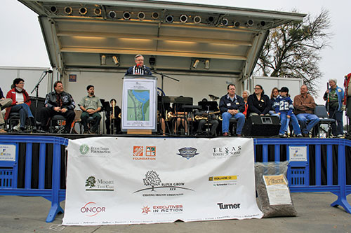 Super Grow XLV featured three components: (1) The Signature Planting projects in each of the 12 Super Bowl XLV host communities (2) The Education and Tree Giveaway (up to 500 seedlings) at one school in each of the 12 Super Bowl XLV host communities, and (3) The Grand Finale event, Touchdown for Trees, a celebration Jan. 24 in Arlington that featured Drew Pearson, Dallas Cowboy great and Super Bowl champion, and Bill Lively, president/CEO of the North Texas Super Bowl XLV Host Committee.