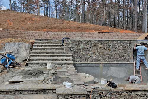 ''Most pools need some kind of wall around the outside to hold it up,'' said Kalar. ''We used the three-piece system for the back side of the pool, and for the front side we used another kind of wall, which is why there's a patio on the back side of it. So really, one of the other goals of the project was to terrace a part of the pool area to create more living space.''