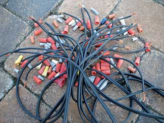 The low voltage in-ground lights have the same shape as the solar lights and the spacing should be the same. The installation is very different. Each low voltage light usually carries a standard 7 watt light bulb. The quantity of lights must be multiplied by 7 watts. If the lights are a higher wattage, multiply using that wattage. The total wattage is the minimum required for the transformer. You must also consider voltage drop in the wire if you have long runs. Make sure the wire is listed SPT-3, underground low energy circuit cable. Route the cable to the desired fixture locations making sure you leave plenty of slack in the cable to allow for ease in connecting the fixtures. After the entire installation is complete, hide cable as desired. It is recommended that the wire be run underneath the pavers in the sand.