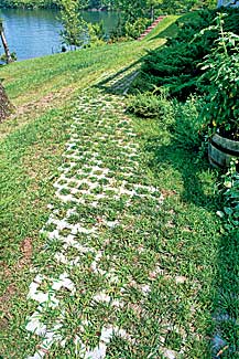 Grasstone pavers, grid paving, and open cellular concrete paving grids typically are all one in the same. Dry cast concrete grass pavers are made to 4000 psi compressive strength. The unit?EUR??,,????'???s surface area sizes range from one to two total square feet. The product is typically available in three, four and six inch thicknesses. Unit shapes are either rectangular or geometric interlocking ?EUR??,,????'??figure eights?EUR??,,????'??. The latter is preferred for vehicular traffic as it may restrict lateral creep of individual units. The principle use has been to provide a stable surface that is capable of growing grassy plant species in the open cells within the body of the unit. It is accurate to consider the product as a surface stabilization element for the development of grassy vegetative growth.