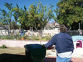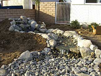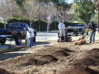 The CLCA, a nonprofit trade organization, selected the site as its community project. Designers from Verdant Landscaping spent several days measuring, photographing and drawing at the site. First Impressions Landscaping, Don Spratt Landscape and Landscapes by Jeffery also provided assistance. An approximate 30-person crew provided by association members spent two Saturdays restoring the existing landscaping and dethatching the backyard, pruning a small orchard of fruit trees, and a complete make-over for the front yard starting with removal of the old, dead lawn. Then soil amendments were rototilled into the soil and a parking area was created with landscape timbers. Another Saturday was spent installing a new irrigation system, sod and plantings for the front. Workers finished by constructing a waterfall during a teach in that was held by Hydro-scape and Aqua-Scapes that uses minimal water. Landscape contractors donated most of the materials, including the waterfall and three mature birch trees.